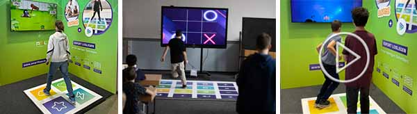 | | | | Lernprozesse durch Bewegung bereichern und das Lernen zu einem aktiven und spielerischen Erlebnis machen - das kann SMARTfloor. SMARTfloor ist ein interaktiver Sensorboden, der eine lebendigere Gestaltung des Informatik-Unterrichts ermöglicht. Das System erfasst die Bewegungen der Lernenden und erlaubt somit die Steuerung vielfältigster Anwendungen durch etwa Hüpfen, Springen oder Tippeln. SMARTfloor ermöglicht ein physisches Erleben der eigenen Programmierung und potenziert dadurch den Lerneffekt um ein Vielfaches! MINT-Fächer werden erlebbar, Sport messbar und Kreativität gefördert. Schüler:innen können eigene Inhalte mit wenigen Klicks erstellen.